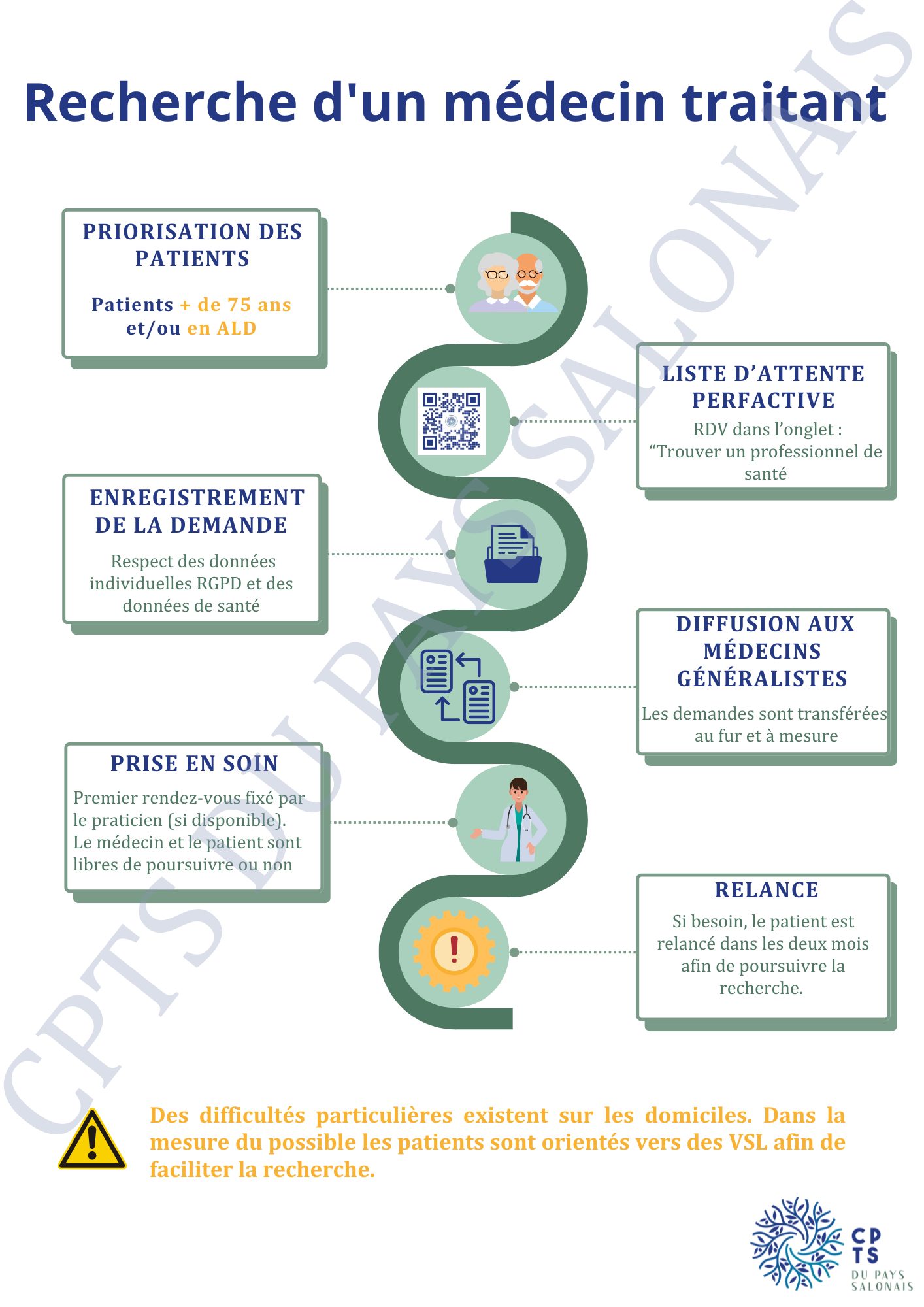 Un patient souhaite faire une demande de médecin traitant ? Un formulaire est à compléter sur le site de la CPTS : https://perfactive.fr/list/cptspayssalonais